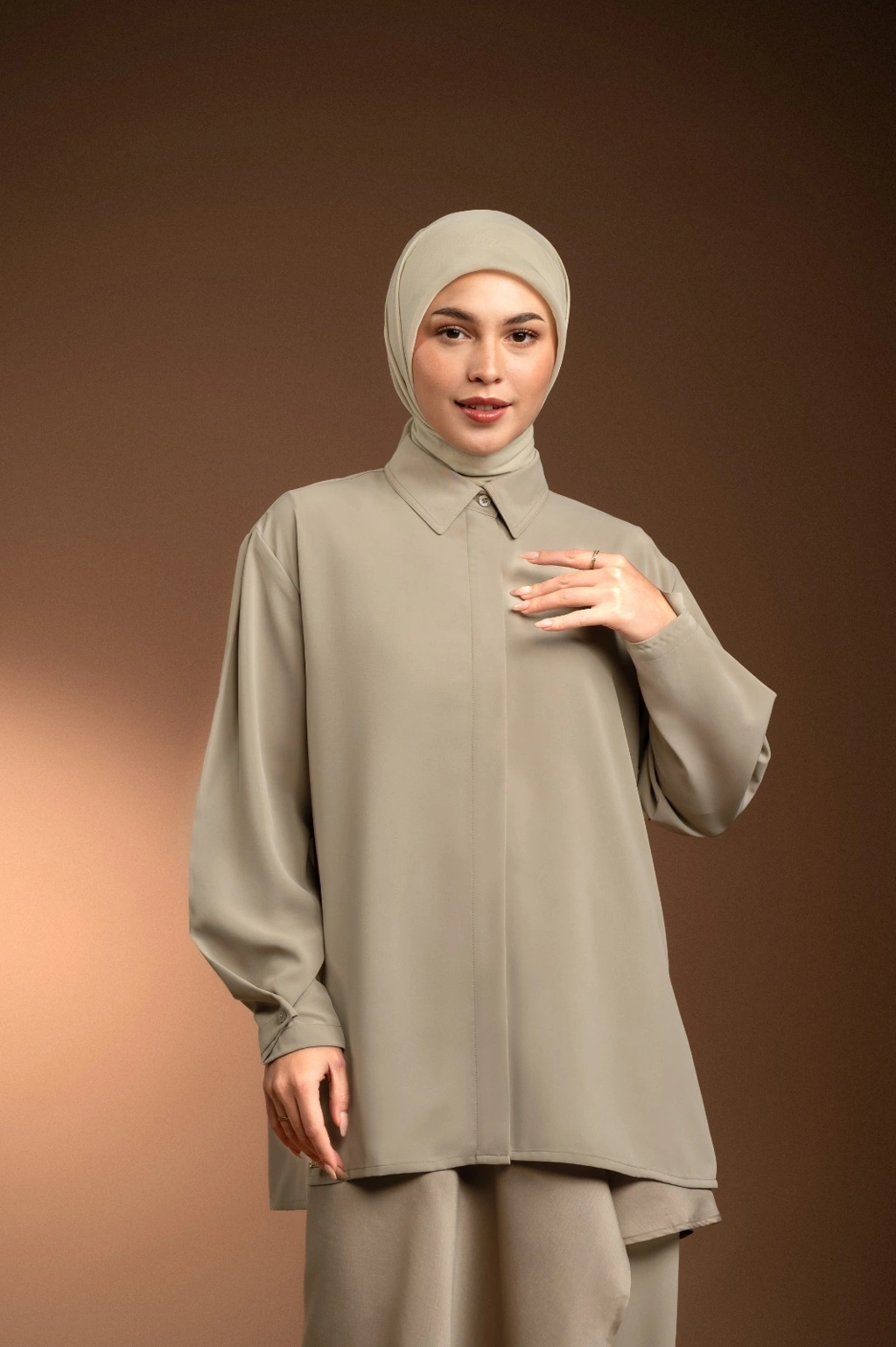 Dapat dikenakan dalam 2 pilihan tampilan: kemeja lurus ataupun kemeja berdetail draperi yang rapi.