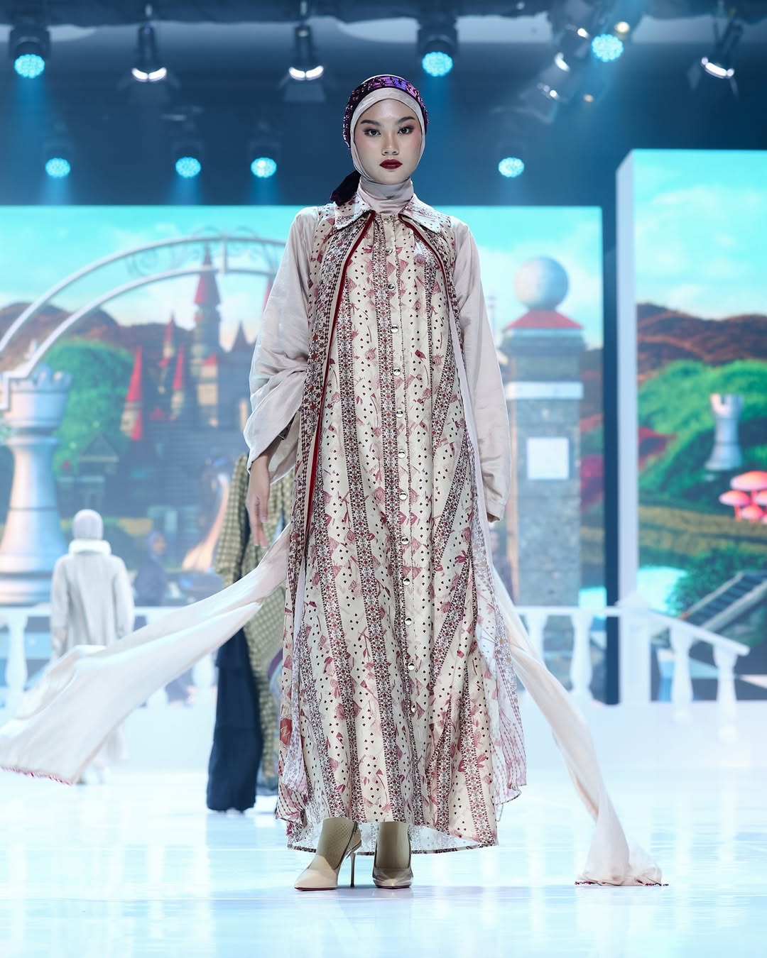 Dress ini memiliki detail layer pada bagian depan yang memperindah tampilan, dipadukan dengan aksen list bludru sebagai sentuhan eksklusif. Detail list bludru juga diaplikasikan pada bagian atas manset, memberikan kesan refined dan classy tanpa berlebihan.